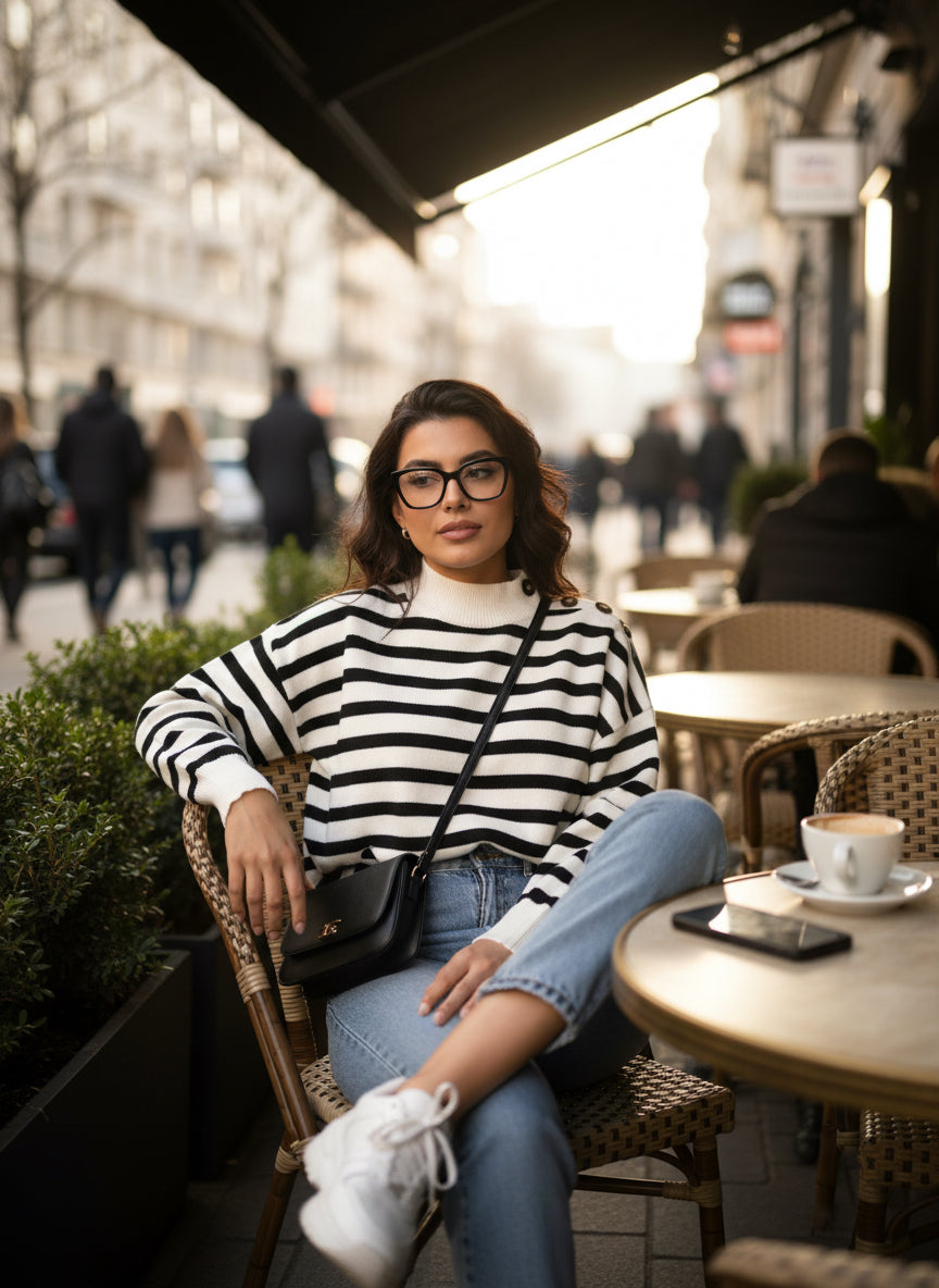 La maglia a righe PDK è perfetta per un look casual e raffinato. Realizzata con un'elegante maglia a righe lupetto, presenta inserti bottoni su la spalla che aggiungono un tocco di stile unico. Ideale per ogni occasione, questa maglia garantisce una vestibilità comoda e di tendenza. Provala ora!